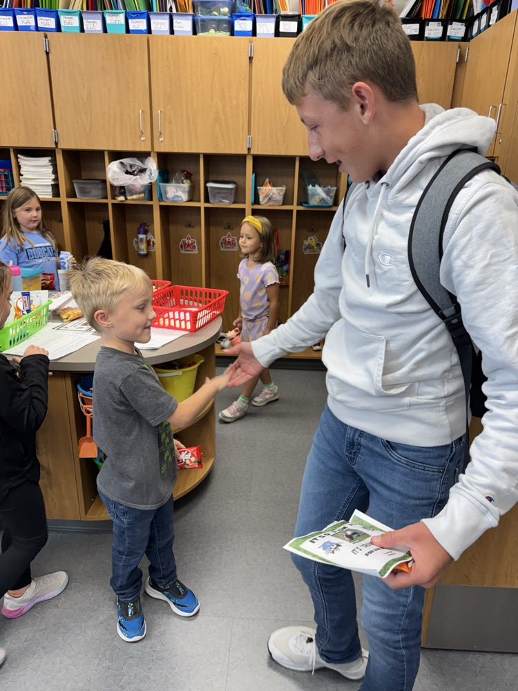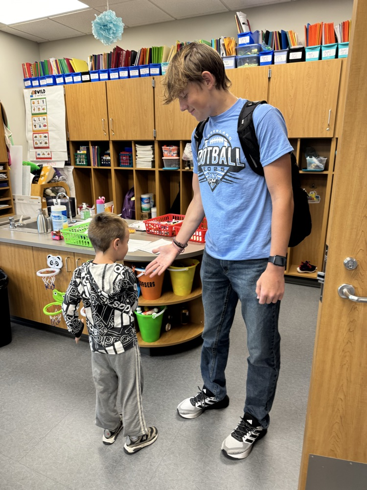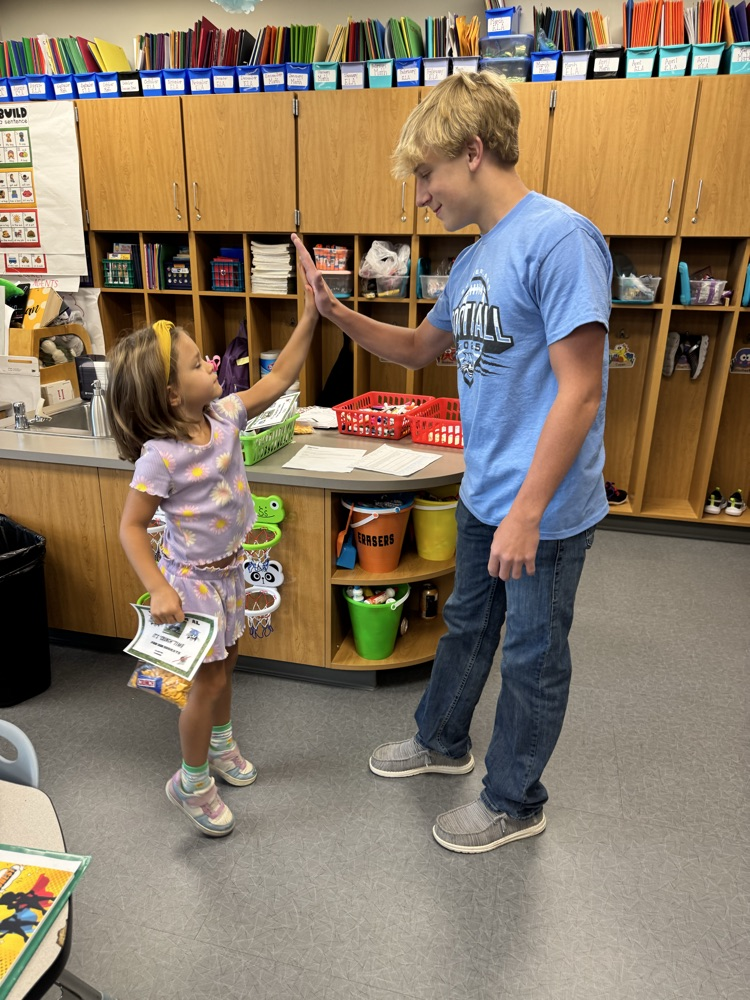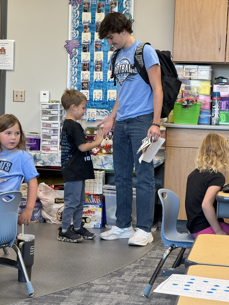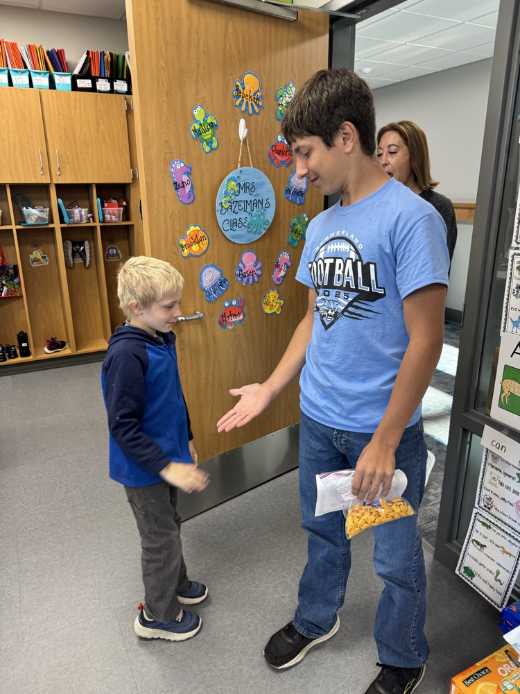 High-5 Friday! ✋ Good luck, football team! Kindergarten buddies are rooting for you! 🏈🐾💙