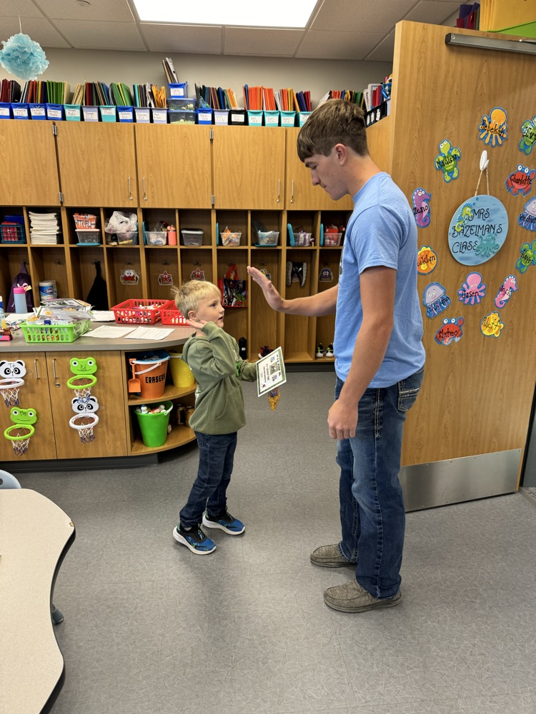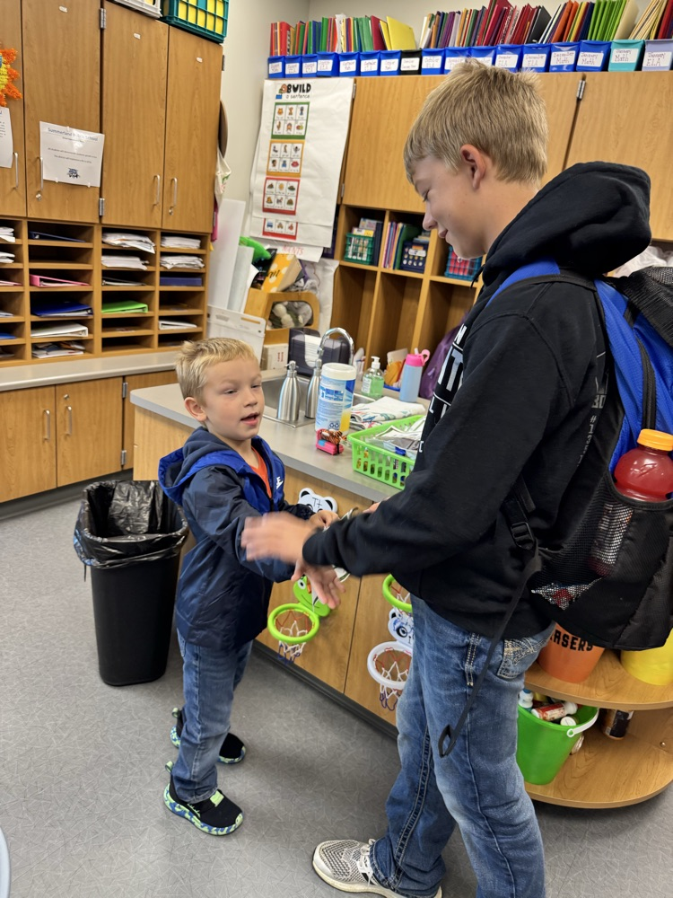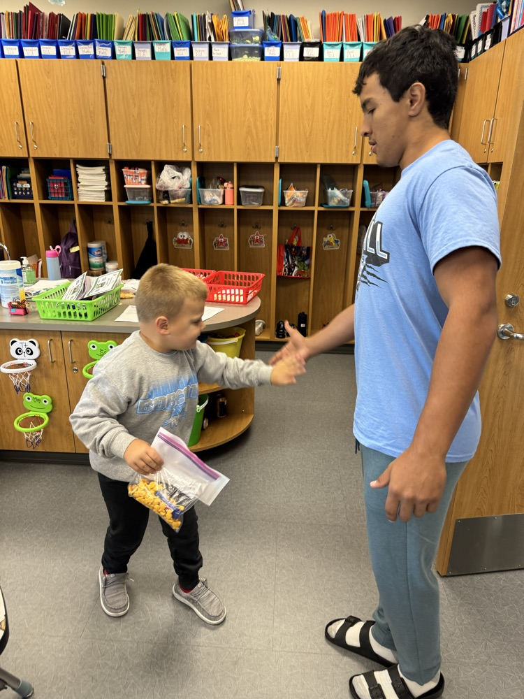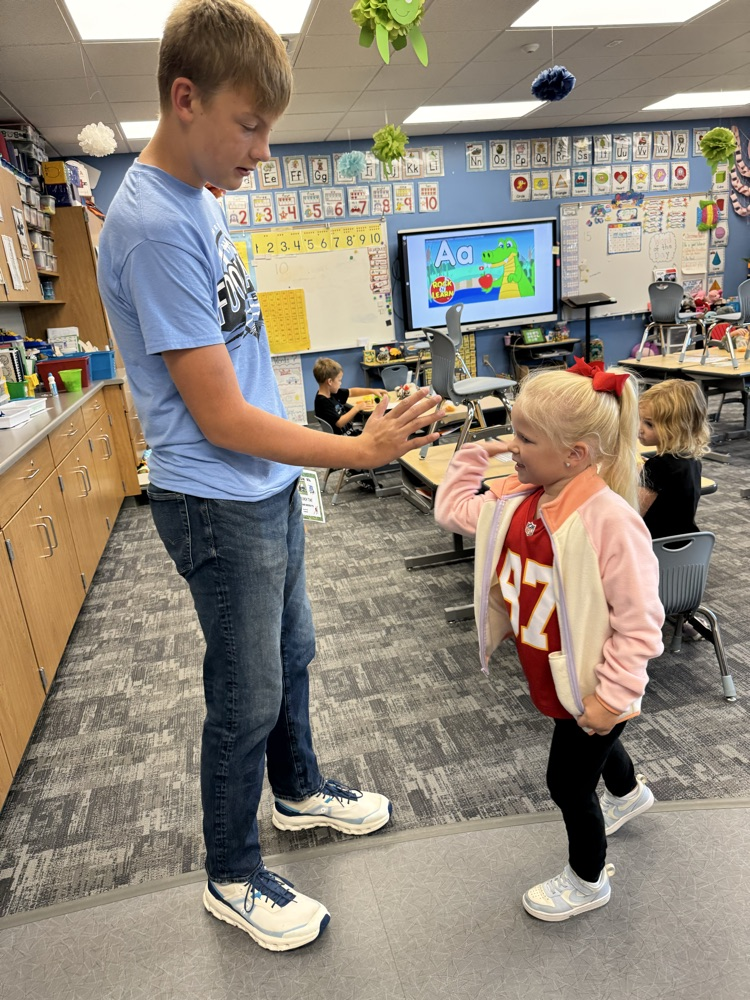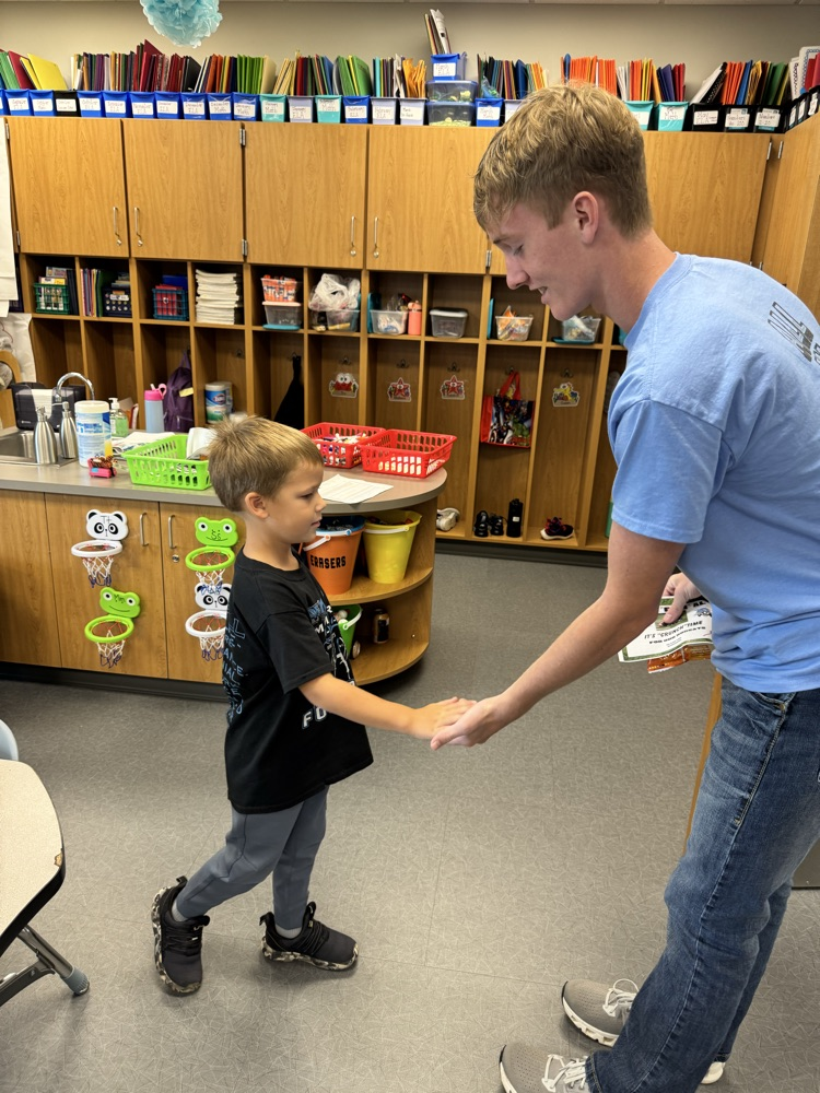High-5 Friday! ✋ Good luck, football team! Kindergarten buddies are rooting for you! 🏈🐾💙